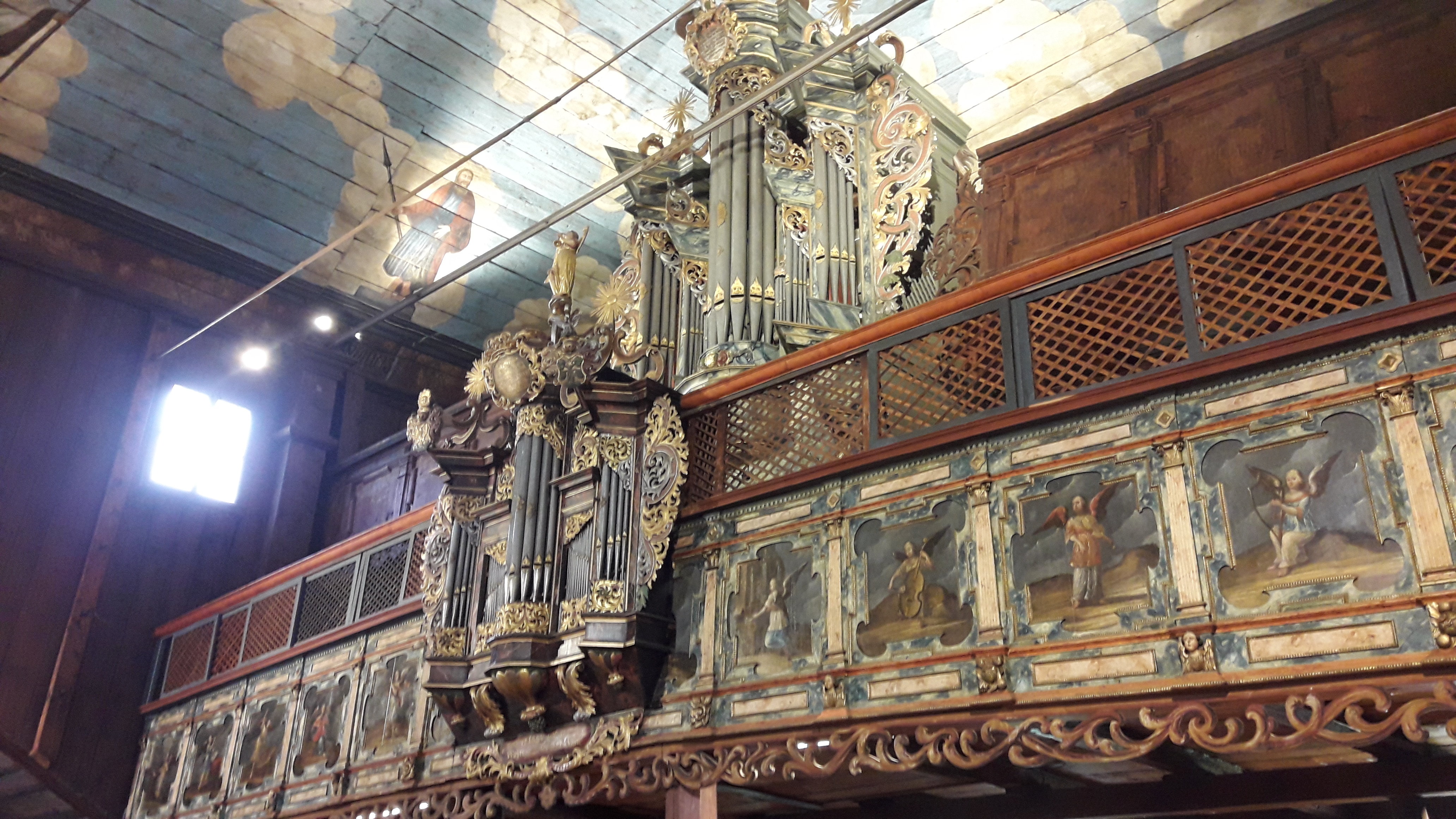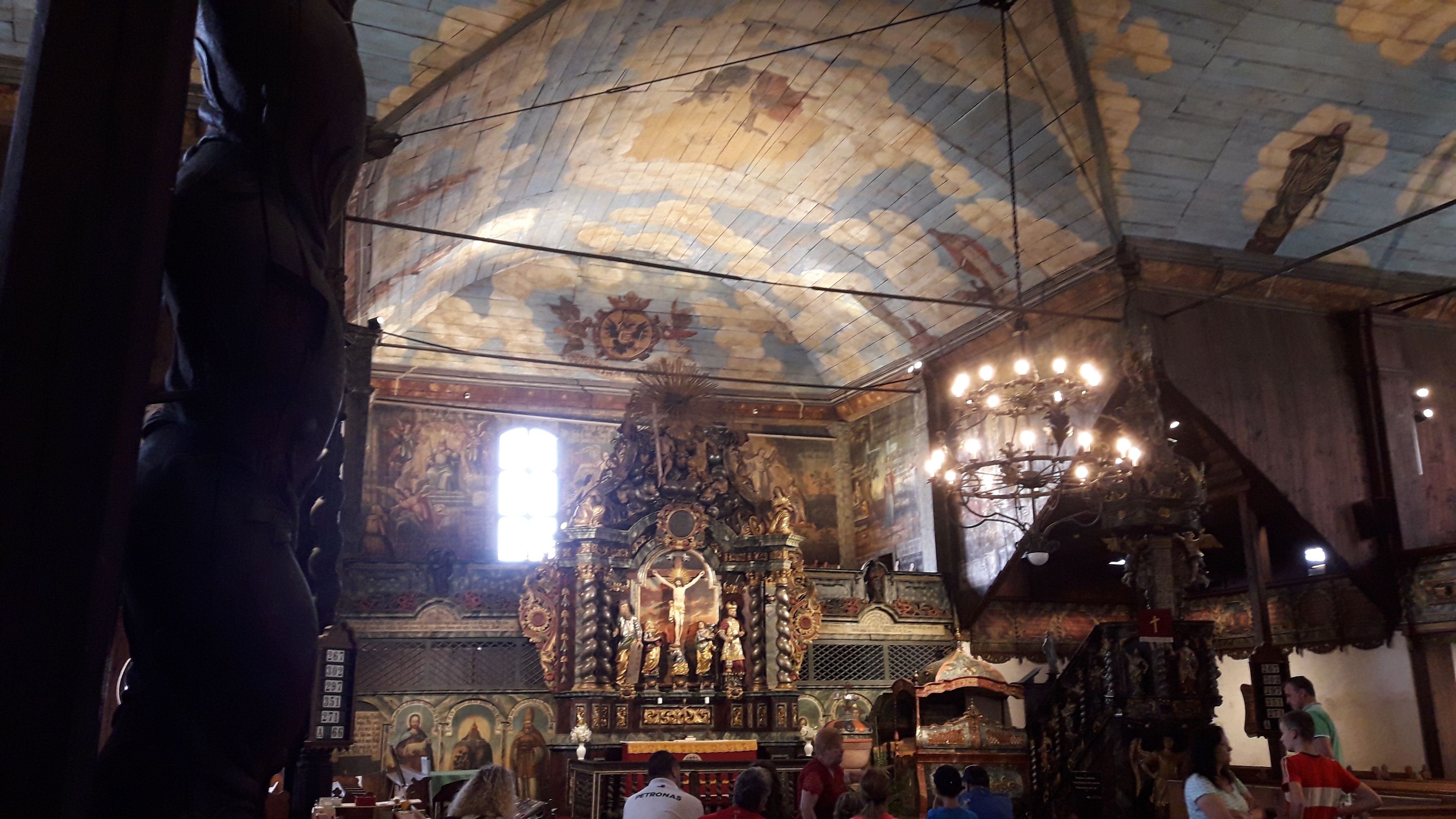 Entstanden sind dadurch Baukunstwerke, die sich als beständiger erwiesen als sicher damals vom im Jahr 1681 beschlussfassenden Ödenburger Landtag erdacht. Die Kezmaroker barocke Holzkirche von 1717 hat im Grundriss eine Kreuzform; sie bietet im Schiff und auf den Emporen Platz für 1.500 Besucher. Der Eintritt zum Besichtigen kostet – zusammen mit dem Besuch in der benachbarten Neuen evangelischen Kirche (mit markantem rotem Anstrich im Stadtbild unübersehbar) drei Euro – Geld, was aber auch dem Erhalt des sehenswerten Sakralbaus zugute kommt. Und außerdem: Es lohnt sich. Ich empfehle einfach in einer der Reihen Platz zu nehmen und sich die nötige Zeit zu nehmen, um die Augen auf eine ausgiebige Reise zu schicken…